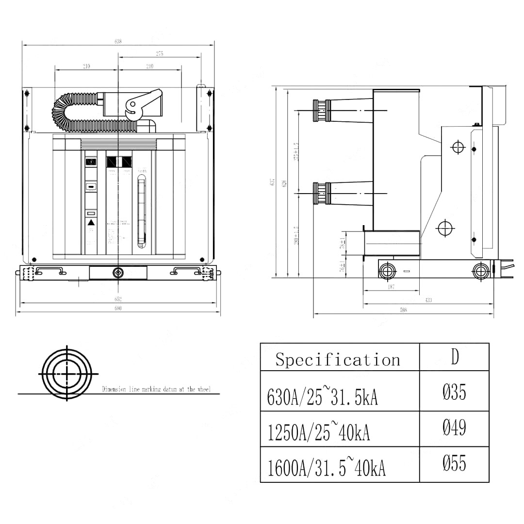 · Na -rate na Kasalukuyang: 630A, 1250A, 1600A, 2000A, 2500A, 3150A, 5000A