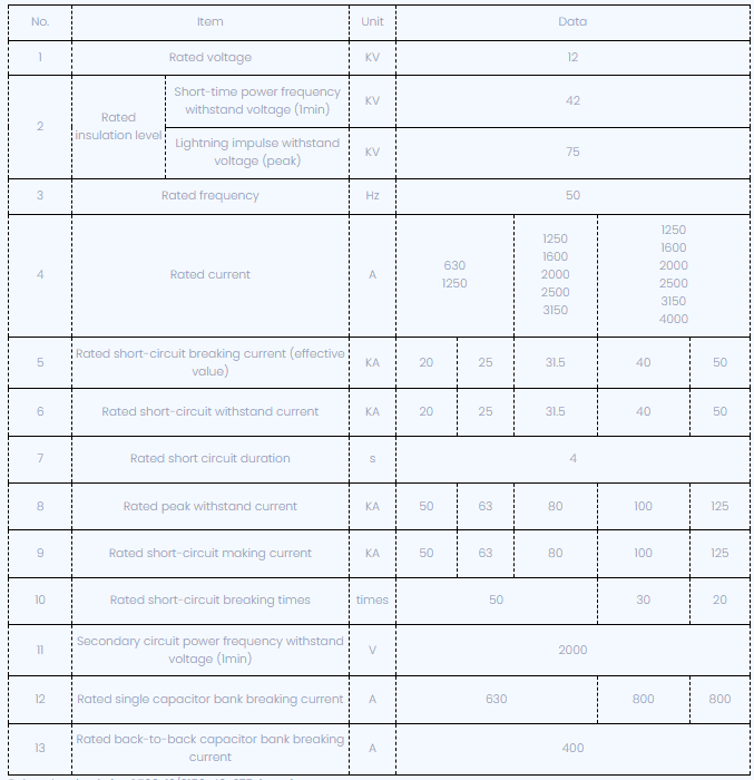 Mga tampok ng CT68-12 vacuum circuit breaker