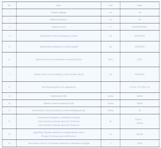 Ang circuit breaker ay sumusunod sa mga pamantayang teknikal tulad ng GB1984-2003 mataas na boltahe AC circuit breaker, DL T402-2007 mga teknikal na kondisyon para sa pag-order ng mataas na boltahe AC circuit breaker at DL / T403-2000 mga teknikal na kondisyon para sa pag-order ng 12KV ~ 40.5KV mataas na boltahe na vacuum circuit breaker.