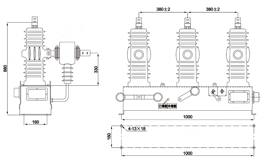 3. Ang mga haligi ng three-phase at kasalukuyang mga transformer ay insulated sa pamamagitan ng na-import na panlabas na epoxy resin solids, na may mga katangian ng mataas at mababang paglaban sa temperatura, paglaban ng ultraviolet at pagtutol ng pagtanda.