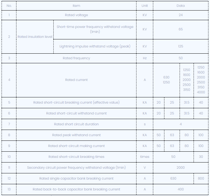 Ang CT68-24 vacum circuit breaker ay nagpatibay ng mga espesyal na materyal ng contact at pagkagambala na may mataas na kapasidad ng pagsira at may napakahabang pagtitiis sa koryente.