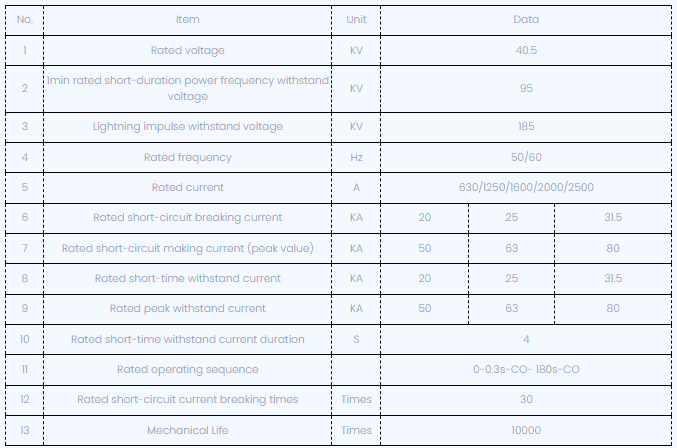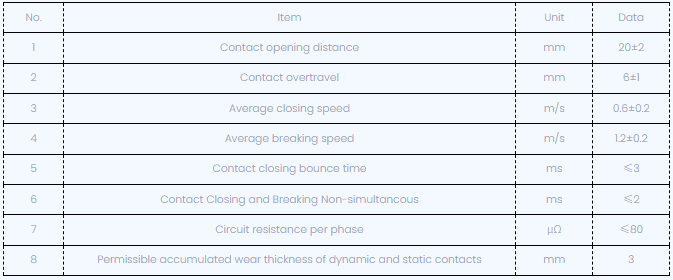 Matapos ang pag -aayos ng circuit breaker, ang mga mekanikal na katangian ng mga parameter ay ipinapakita sa ibaba: