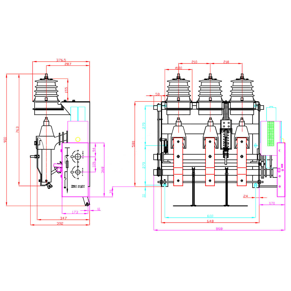 Ang FKN12-12D/630-20 Indoor AC high-boltahe na switch ay isang three-phase high-boltahe switchgear na may isang rate na boltahe na 12KV at isang rate ng dalas na 50Hz. Ginagamit ito para sa paglipat ng kasalukuyang pag-load ng kasalukuyang, closed-loop kasalukuyang, walang-load na transpormer at kasalukuyang singilin ng cable, off ang pinagsamang short-circuit kasalukuyang. Ang switch ng pag-load na nilagyan ng switch ng grounding ay maaaring makatiis ng short-circuit kasalukuyang.and m-ainly na ginagamit sa pamamahagi ng pamamahagi ng kapangyarihan at pang-industriya na de-koryenteng kagamitan kung saan ang tatlong phase closed loop circuit o ilalim na sistema ng supply ng kuryente para sa kontrol at proteksyon.