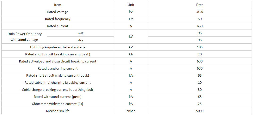 Ang FLN36-40.5D/T630 Indoor Sulfur Hexafluoride (SF6) load switch at FLN36-40.5DR/125 load switch fuse kumbinasyon ay angkop para sa mga istasyon ng kuryente at pang-industriya na de-koryenteng kagamitan na may three-phase AC 50/60Hz Ring Network o Terminal Power Supply. Ginagamit ang mga ito bilang proteksyon ng load control line para sa mga sistema ng kuryente. Ang switch ng pag-load ay naghahati at nagsasara ng kasalukuyang pag-load ng kasalukuyang, closed-loop kasalukuyang, walang-load na transpormer at cable charging kasalukuyang; Ang kumbinasyon ng mga de-koryenteng kasangkapan ay maaaring masira ang anumang kasalukuyang sa ilalim ng na-rate na short-circuit kasalukuyang at angkop para sa mga de-koryenteng kumpletong hanay ng mga kagamitan tulad ng mga pangunahing yunit ng singsing at mga substation ng uri ng kahon.