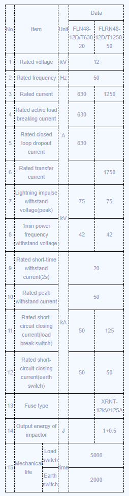Mga Teknikal na Parameter ng FLN48-12D Type Indoor HV SF6 Load Break