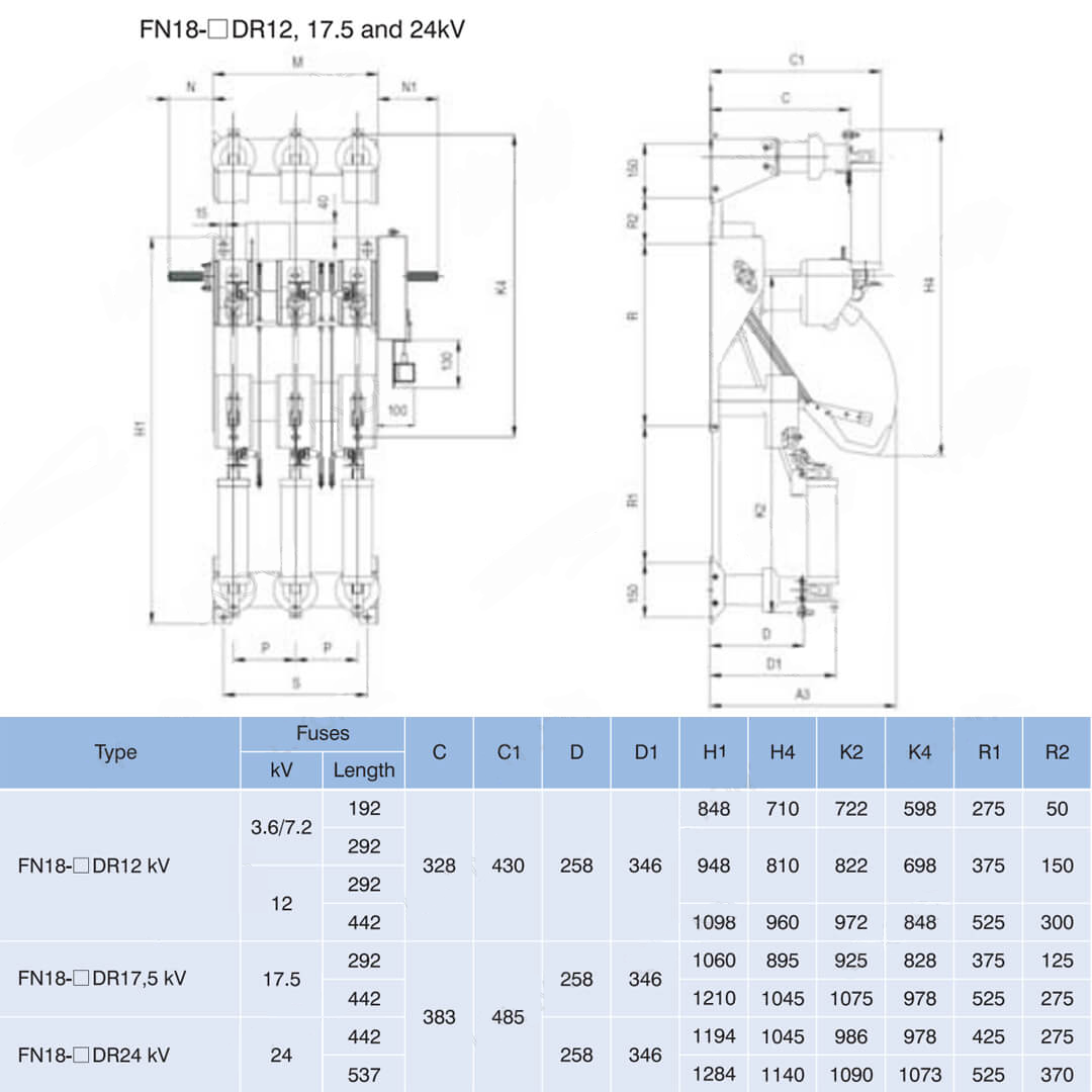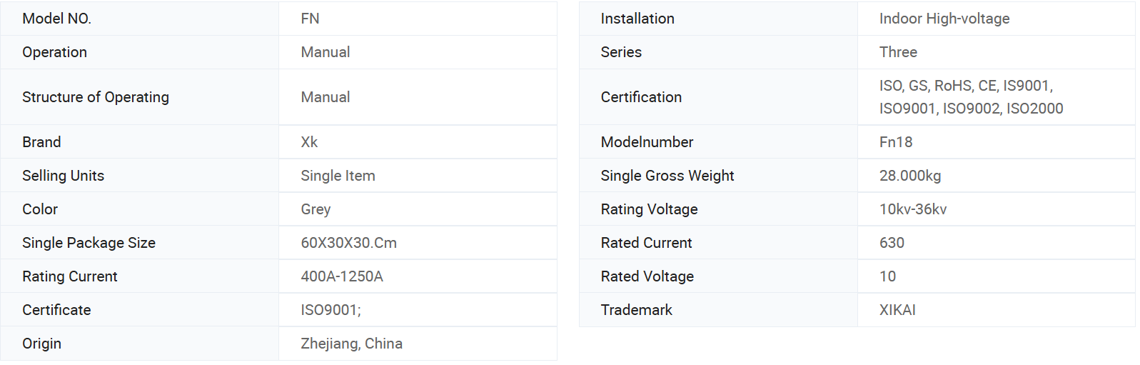 Ang mga switch ng FN18 at pag-load ng mga kumbinasyon ng switch-fuse ay may mataas na boltahe, mga switch ng pag-load ng mataas na pagganap na pinagsasama ang compressed-air arc extinguishing at gas-produce arc extinguishing. Ang kumbinasyon ng switch ng pag-load at fuse ay pinagsasama ang mga pakinabang ng switch ng pag-load kasama ang mga piyus upang lumipat ang anumang pag-load ng kasalukuyang hanggang sa na-rate na pagbasag ng kasalukuyang pag-load ng switch, at upang lumipat ang anumang overcurrent hanggang sa na-rate na short-circuit breaking kasalukuyang ng kumbinasyon sa pamamagitan ng paraan ng pagpapatakbo ng fuse at ang impinger nito.