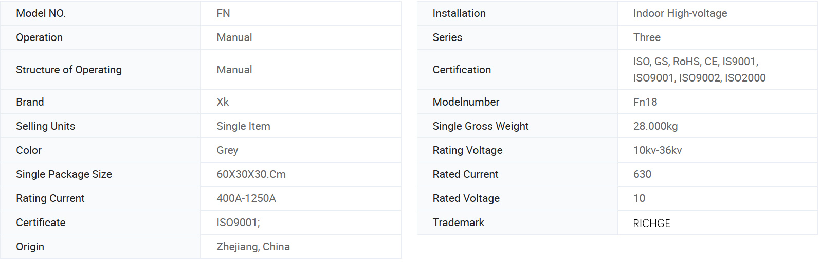 Ang serye ng FN18 na panloob na high-boltahe na switch ng pag-load ay may mga pakinabang ng madaling disenyo, operasyon, compact na istraktura, maliit na dami, buong pag-andar, magaan na timbang, mabilis na pagsira at bilis ng pagsasara at mataas na pagiging maaasahan. Ito ay angkop para sa AC 50Hz, na-rate na boltahe 12kV, 24KV, na-rate ang kasalukuyang 630A at three-phase distribution system, lalo na para sa mga proyekto sa konstruksyon ng network at pagkukumpuni, mga gusali ng mataas na pagtaas, supply ng kuryente ng network ng mga pampublikong pasilidad, at isang mainam na produkto para sa box-type na substation at proteksyon ng transpormer.