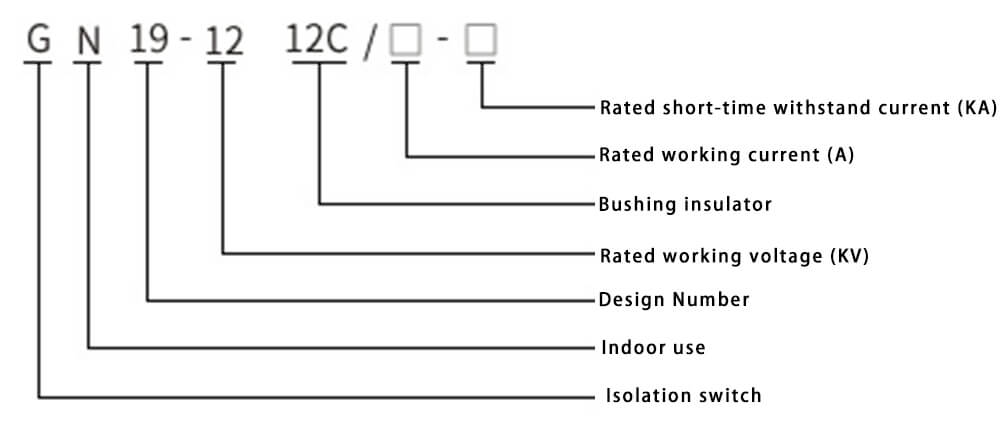 Ang seryeng ito ng mga nakahiwalay na switch ay isang uri ng tatlong-poste, na binubuo ng isang tsasis, isang umiikot na baras, isang pingga, isang porselana na insulator ng haligi, isang kutsilyo at isang wiring board. Ang umiikot na baras ay nakaayos sa ilalim na frame, kung saan tatlong pares ng mga lever ang welded, at ang mga lever ay dumaan sa pull rod porselana insulator at ang kuwintas ng kutsilyo. Ang umiikot na baras ay umaabot sa base frame, at ang anumang seksyon ng umiikot na baras ay maaaring konektado sa mekanismo ng operating.