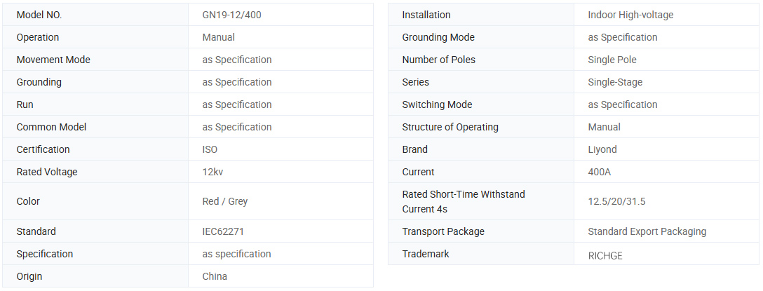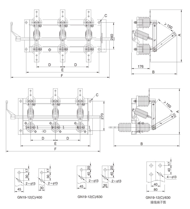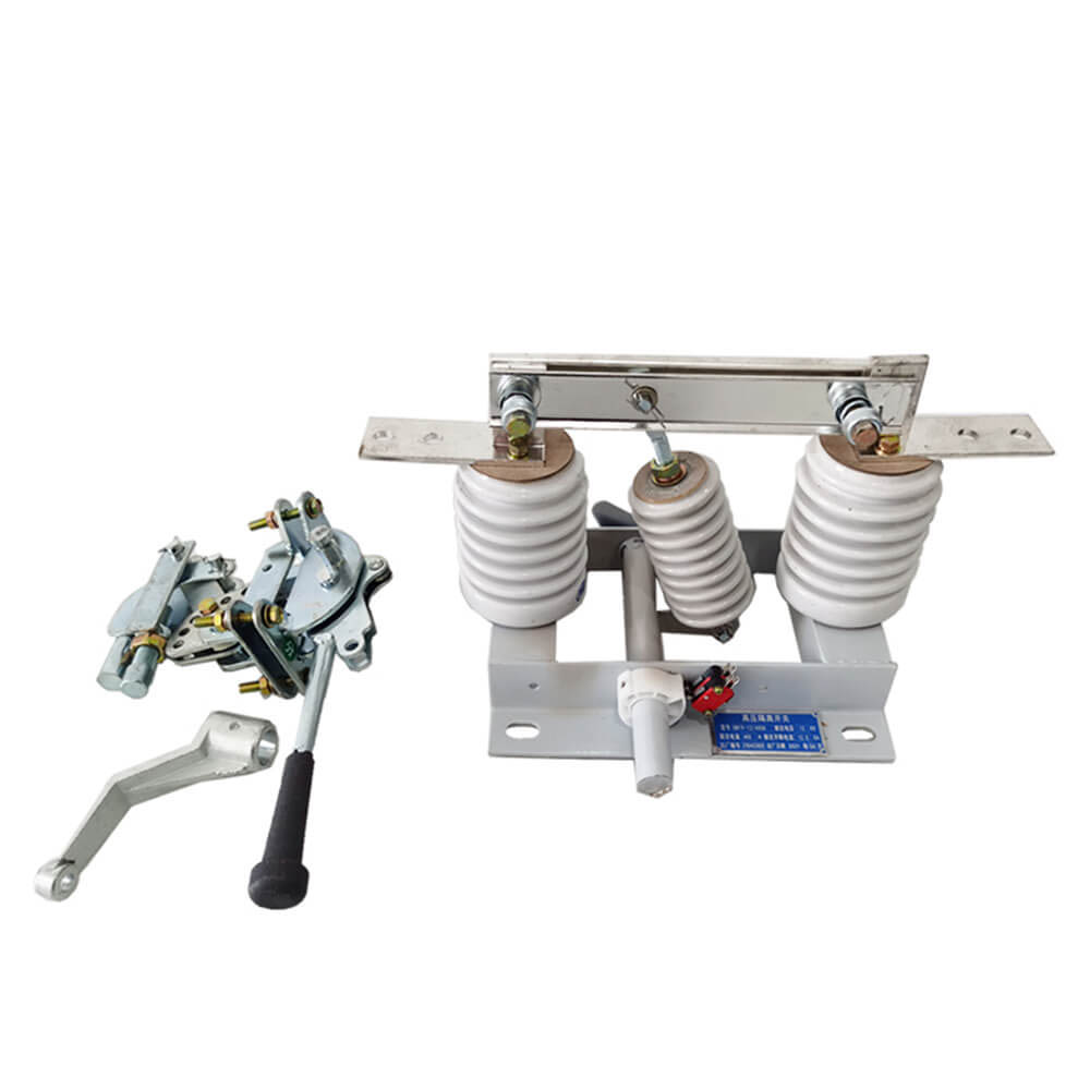 Ang conductive na bahagi ng GN19-12/400, 630, 1000, 1250 na uri ng disconnect switch ay naayos sa base ng dalawang haligi ng mga insulators para sa bawat yugto. . Ang bawat yugto ng kutsilyo ng contact ay konektado sa gitna ng tie insulator, tie insulator at naka -install sa base ng spindle na konektado. Ang spindle ay konektado sa pagkonekta rod (ibinigay ng gumagamit) at CS6-1 na uri ng paglipat ng mekanismo sa pamamagitan ng hawakan. Ang pagkonekta ng kutsilyo ng contact ay binubuo ng dalawang slotted na mga plato ng tanso, na hindi lamang pinatataas ang lugar ng pagwawaldas ng init ng kutsilyo ng contact upang babaan ang ilalim na temperatura, ngunit pinapabuti din ang mekanikal na lakas ng kutsilyo ng contact, upang ang dinamikong katatagan ng switch ay napabuti. Ang isang dulo ng kutsilyo ng contact ay naka -mount sa contact block (o sa conductive rod) ng isang bolt (kotse ng shaw). GN19-12/1000, 1250 na nakikipag-ugnay sa pag-install ng magnetic locking plate, PLus ang purpose ng magnetic locking plate ay kapag ang isang malaking short-circuit kasalukuyang upang mapahusay ang dalawang groove contact kutsilyo sa pagitan ng | Pag -akit. Ang GN19-12/400, 630 Disconnect Switch ay may isang maliit na limitasyon sa pamamagitan ng kasalukuyang, kaya hindi na kailangang magdagdag ng isang magnetic locking plate.
