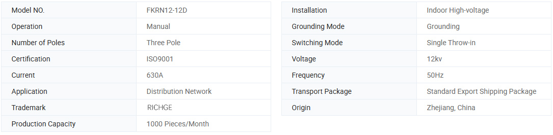 FKN12-12D/630-20 Series air-blast load break switch (mula rito ay tinukoy bilang FKRN12- 12D) at FKRN12-12D Series air-blast load break switch at fuse combination apparatus ay mga bagong serye switchgear na nalalapat sa tatlong-phase electric distribution system ng na-rate na 12kV, na kumikilos bilang pagprotekta at kontrol ng mga apparatus para sa mga transformer, cable at sa head wiring.