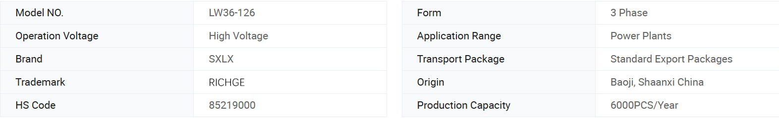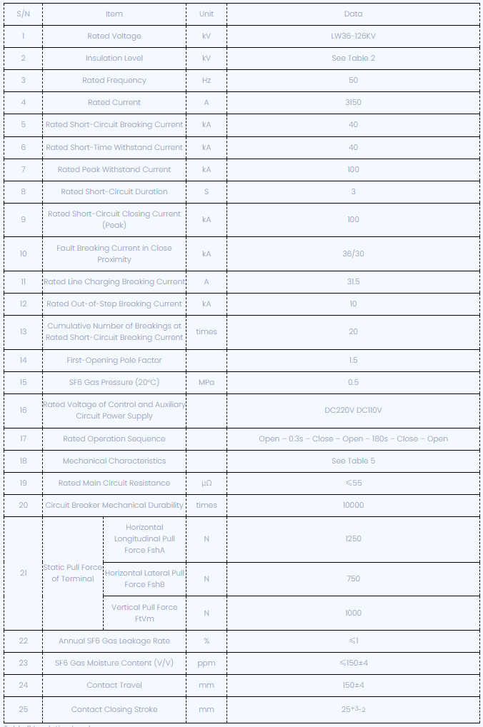LW36-126 SF6 Circuit Breaker Technical Parameter