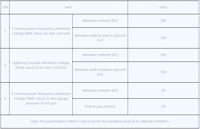 Dahil sa likas na mataas na lakas ng pagkakabukod ng asupre hexafluoride gas at ang pinakamainam na paggalaw ng contact ng circuit breaker, ang circuit breaker ay sumisira sa capacitive kasalukuyang walang paghahari; Ang antas ng panlabas na pagkakabukod ay mataas, ang panlabas na pagkakabukod ay idinisenyo na may isang malaking distansya ng creepage, ang distansya ng ratio ng creepage ay ≥31mm/kV, at ang pagganap ng paglaban sa dumi ay mahusay. Maaari rin itong gumana nang ligtas sa mga malupit na kapaligiran;