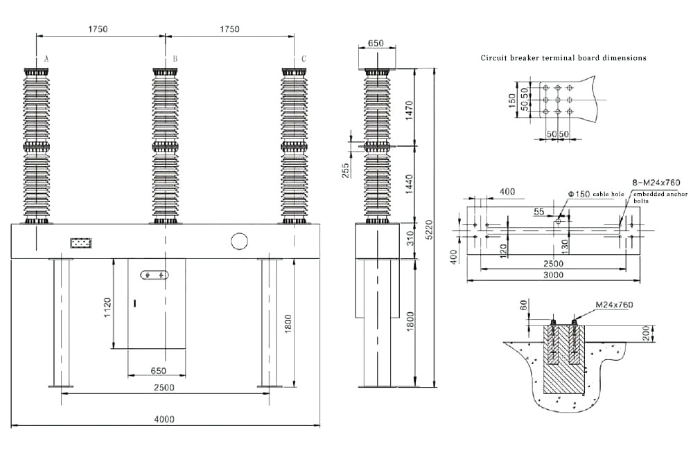 Ang circuit breaker ay nagpatibay ng isang three-phase porselana na haligi na single-break na istraktura. Ang tatlong yugto ay nilagyan ng mekanismo ng operating spring, na kung saan ay nakaayos sa gitna at pinatatakbo ang three-phase, kaya ang hitsura ay nobela at katangi-tangi. Ang circuit breaker ay gumagamit ng SF6 gas bilang pagkakabukod at arc extinguishing medium. Sa panahon ng operasyon, ang three-post na SF6 gas ng circuit breaker ay konektado, at ang isang pointer-type density relay ay ginagamit upang masubaybayan ang presyon at pag-unlad ng density. Dahil sa prinsipyo ng pagpapalabas ng enerhiya sa sarili at ang na-optimize na disenyo sa sistema ng paggalaw ng circuit breaker, ang mekanikal na kahusayan ay epektibong napabuti at ang operating work ay nabawasan;