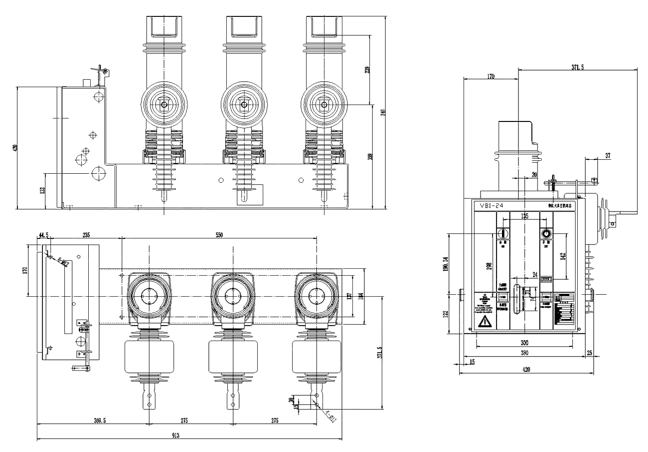 VBI-24 24KV Side na naka-mount na insulating cylinder 3-phase vacuum circuit breaker