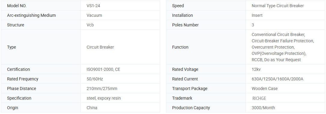 Ang serye ng VS1-24 ng panloob na mataas na boltahe na vacuum circuit breaker na may karaniwang insulated cylinder ay three-phrase A.C. 50 Hz panloob na kagamitan sa pamamahagi ng kuryente na may na-rate na boltahe na 24KV. Ginagamit ito para sa pagprotekta sa pagkontrol sa mga de-koryenteng kagamitan sa larangan ng industriya at pagmimina ng negosyo, mga halaman ng kuryente at substation.Ang uri ng vacuum circuit breaker ay sumasang-ayon sa pambansang pamantayan at ang stipulation ng pamantayan ng IEC, ang kakayahan ay umabot sa grade ng M2-E2-C2.