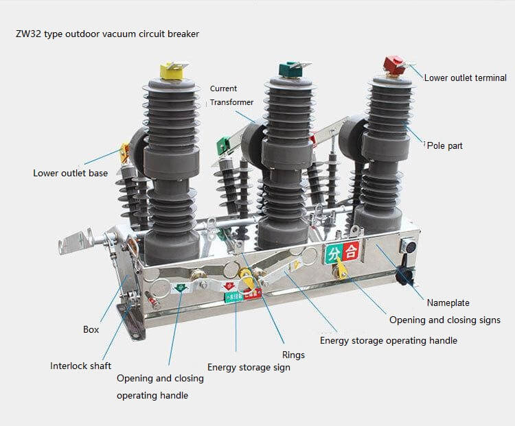 Ang ZW32-12 panlabas na vacuum circuit breaker (mula rito ay tinukoy bilang circuit breaker) ay isang kagamitan sa pamamahagi ng panlabas na kapangyarihan na may na-rate na boltahe ng 12KV at three-phase AC 50Hz. Ito ay pangunahing ginagamit upang masira at isara ang pag -load ng kasalukuyang, labis na karga ng kasalukuyang at maikling circuit kasalukuyang sa sistema ng kuryente. Ito ay angkop para sa proteksyon at kontrol sa substation at pang -industriya at pagmimina ng mga sistema ng substation ng negosyo, at mga lugar kung saan madalas na gumana ang mga grids ng kanayunan.