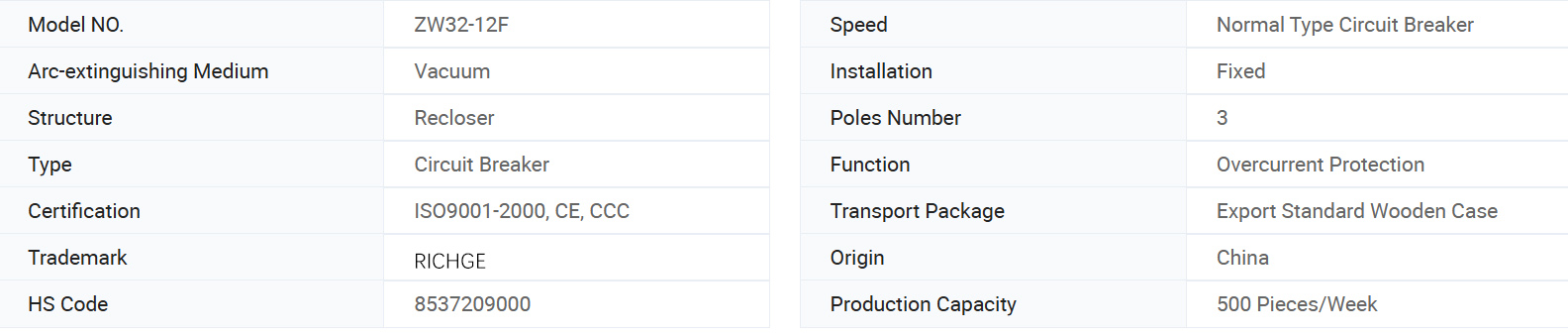 Ang ZW32-12 Series Outdoor AC high-boltahe vacuum circuit breakers ay sumunod sa GB 1984 "AC high-boltahe circuit breakers" at ang International Electrotechnical Commission IEC 60056 "high-boltahe AC circuit breakers" at iba pang mga pamantayan.