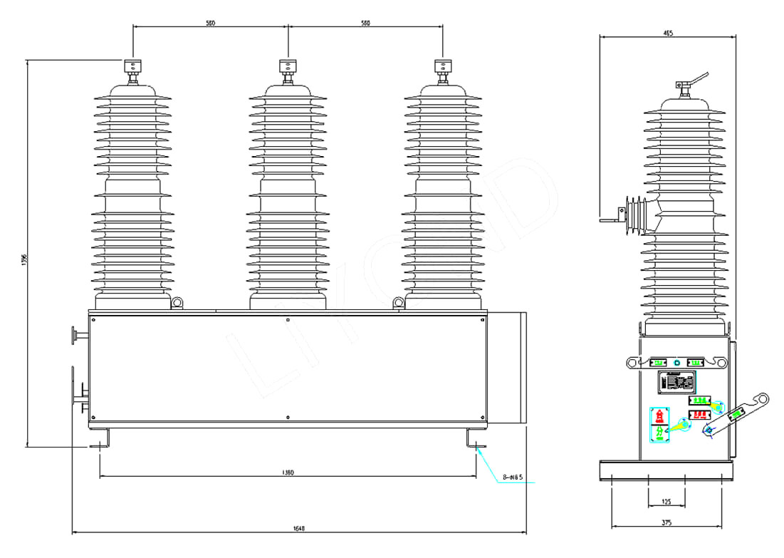 Ang ZW32-40.5 Series panlabas na high-boltahe na vacuum circuit breakers ay ginagamit sa mga three-phase power system na may AC 50Hz at na-rate na boltahe ng 35kV, bilang isang paraan ng paghihiwalay at pagsasama-sama ng pag-load ng kasalukuyang, labis na labis na kasalukuyang at short-circuit kasalukuyang. Ang circuit breaker ay maaaring magamit sa reclosing controller upang makilala ang kasalukuyang mga katangian at makamit ang maraming awtomatikong pag-reclosing, ang self-brovided PT bilang isang mapagkukunan ng kuryente upang maging isang intelihenteng circuit breaker na may boltahe at kasalukuyang output ng signal at maaaring kontrolado; Sa pamamagitan ng elektronikong PT upang magbigay ng kapangyarihan at maaaring makumpleto ang labis na pagkaantala, inrush kasalukuyang pagkaantala, short-circuit mabilis na break na three-stage composite protection.