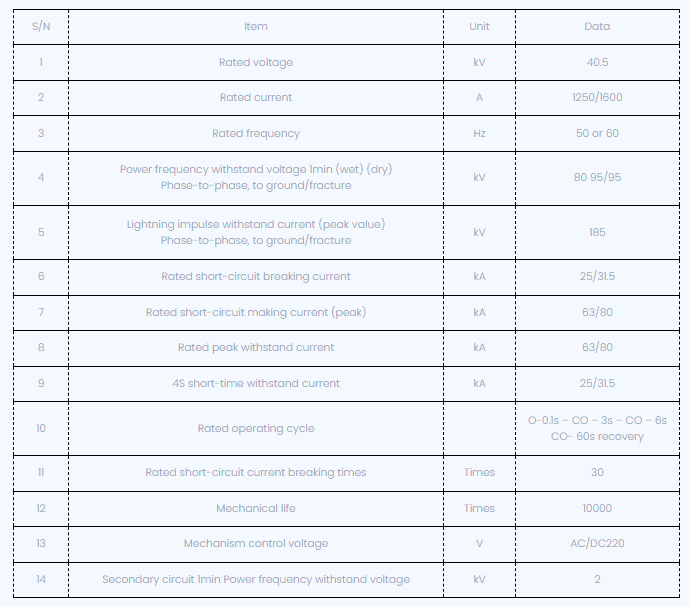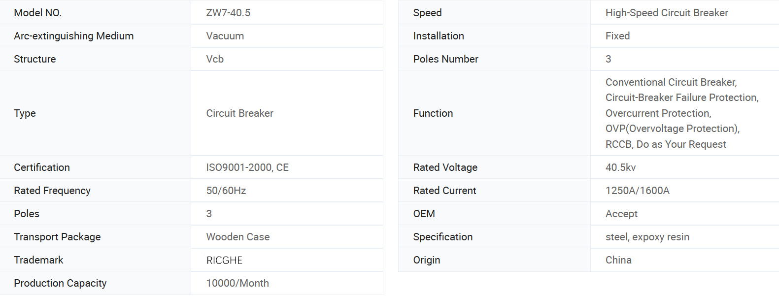 ZW7-40.5 outdoor medium-voltage vacuum circuit breaker is athree-phase AC 50Hzoutdor high-voltage electrical equipment tis suitable for the control and protection of 20-40.5kV power transmission and distribution systems,it can also be used in the occasions of section circuit breakersand switched capacitor banks,this product can be used with piecewise controller,the reclosing device can realize intelligent sectioning at pag -redose ng kontrol ng sistema ng kuryente.a kasalukuyang transpormer ay maaaring maidagdag para sa pagsukat at proteksyon.Ang singsing circuit breaker ay nilagyan ng isang tagsibol o electromagnetic actuator, na may maaasahang mekanikal na pagganap at madalas na operasyon; walang panganib ng apoy at pagsabog